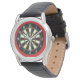 Dit horloge is een coole vormgeving voor degenen die genieten van donkere donkere spelen. Het is voorzien van een dart board afbeelding omgeven door een heldere rode rand.