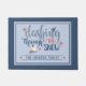 dashing door de sneeuwaanpasbare welkomstmatpeuter op sleedelicate sneeuwvlokkenbesneeuwde winterdagelegante scripttypografieaanpasbaar monogramfamilienaamvoor nieuwe huiseigenarenblauw wit rood kleurenpalet