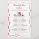 Dit is Amore "Zou ze liever?" vrijgezellenfeest spel voegt gelach en charme aan uw feest. Met een schone witte achtergrond, een romantisch rood script en grillige Italiaanse voedselpictogrammen, nodigt deze kaart gasten uit om de voorkeuren van de bruid-to-be te raden - van datumavonden tot droomvakanties. Een luchtige manier om meer te weten te komen over de eregast!