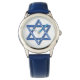 Leuke polshorloge met een blauwe glazen uitstraling Davidster. Geweldig cadeau voor de feestdagen of Bat/Bar Mitswa.