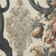 Barokke spiralen verstrengelen met weelderige bloemen als een koninklijke leeuw zijn tanden onder een snuffelende gargoyle-leeuw hybride. Perzik dahlia's en amberkleurige chrysanten ontvouwen zich te midden van gebeeldhouwd scrollwork, framing mythische heersers van het mysterieuze hof van natuur. De Arcane Apex roept een spanning van schoonheid en autoriteit op - waar adel jaagt onder tuinen van macht. Want zelfs in elegantie wacht de top om opgeëist te worden.