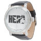 Typografie van het woord: "Hero", met aan het eind de omtrek van Batman met een zwerm vleermuizen.