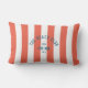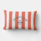 Het perfecte gepersonaliseerde kussen voor uw buitenruimte deze zomer... Sinaasappel/rode cabana strepen met blauw verdrietig aangepaste "The Beach Club" kuif. Personaliseer met het jaar, het strand en de bestemming. Perfect als aandenken voor een voorbije reis. Bijpassende accessoires beschikbaar in The Beach Club Cabana Stripe Collectie.