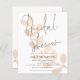Een alternatief voor een budget van 4,5 x 5,6-inch halfglanzend gewicht van 110 lbs, dat even dik is als een briefkaart (maar niet geschikt om als briefkaart te worden gebruikt). GEEF NOTA ER ÉÉN UITnodiging per blad is. De begroting verliest de Uitnodiging van de Bridal van het Manuscript. Dit moderne ontwerp voor uw Vrijgezellenfeest Invitees heeft elegant manuscript voor Vrijgezellenfeest bij de bovenkant geplaatst en gemakkelijk personaliseert met uw details onder. Een gekleurde achtergrond van artsy perzikbladeren loopt van de bodem naar de bovenkant onder de typografie en is ook aan de andere kant.