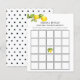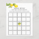 Vrijgezellenfeest bingo-kaart met waterverf vertakking met gele citroenen en polka stipachtergrond. Een leuke manier om te communiceren met douchegasten terwijl de bruid-om-te-zijn haar cadeautjes opent bij haar trouwdouche.