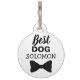 Dit schattige label van de bruiloft maakt het perfecte accessoire voor je puppy op je trouwdag. Het is voorzien van een mooie elegante zwarte bowtie met de titel "Beste hond", en het is gemakkelijk aanpasbaar door het veld sjabloon te bewerken met de naam van je huisdier op de voorkant en je trouwdatum op de achterkant.