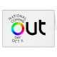 Een fel kleurenwiel 'O' in de grote 'Out Day' van de Nationale Komende Dag, 11 oktober, vat het oog op. Homo, homo, lesbisch, biseksueel, transseksueel en hetero - dit is ook onze wereld. Kom eruit!