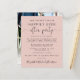 Een budgetvriendelijke wazige roze roze, behalve de datum die een receptie of een feest aankondigt om je huwelijksreis of privé-bruiloft te vieren. De voorste eigenschappen "sparen de Datum voor Onze gelukkig Ooit na Partij"in eenvoudige typografie en een elegant manuscript met swashes, uw aangepaste trouwaankondiging, partij of ontvangst sparen de datumdetails en uw namen in een handtekeningsachtig manuscript. Aan de achterzijde staan uw trouwfoto, voornamen en bruiloft- en ontvangstdata.