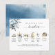 Prachtige waterverf trouwtijdlijn, zeker om indruk te maken op je gasten. Voeg een kaart toe aan uw uitnodigingen en laat alle gasten op de hoogte zijn van de tijd van de evenementen of verdeel deze tijdens de ceremonie wanneer de gasten worden verwelkomd. Ook beschikbaar bij ceremonieprogramma op de achterkant. Elegant handgeschreven kalligrafie detail. Fijne waterverf op de hoek met bloemen en bladeren in stoffige blauw, jus, wit, grijs en grijze tinten. De fijne afbeeldingen van de artistieke waterverf in gouden tinten en het coördineren van florale details aan bouquet op de hoek. Terug in een stoffige blauwe waterverf was. Deel van ons collectie "Rustic Blue Mountains" Wedding and Events. Mogelijkheid om informatie aan te passen aan uw behoeften en zelfs rond tijdlijnse afbeeldingen en tekst naar een andere volgorde te verplaatsen.