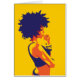 Afrocentrische vrouw in briljante kleuren die aan haar volgende zet denkt.