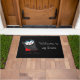 De mat van de deur met een zwarte achtergrond en een draculadruk die van Halloween wordt getoond.