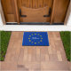 De deurmat van de vlag van de Europese Unie met douanetekst voor huis of opslag. Europa Eurosterren. Blauw en geel. Maak uw eigen aangepaste deurmat voor het land chique huis, restaurant, hotel, bedrijf, kantoor, bedrijf, winkel enz. Voeg je eigen welkomstbericht, familienaam, monogram, winkelnaam of grappige offerte toe. Schattige cadeau-idee voor een nieuw housewarming party. Grote letters typografie. Aangepaste kleur achtergrond. rustieke typografie. deurmat teken sjabloon. Creëer uw eigen ingangsmat/vloerkleed voor voordeur/entree of hal. home decor / decoraties voor uw huis of winkel.