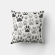 Afbeeldingen hondenpootafdrukken overal. Aangepaste gooi kussens. Zwart, wit en grijs ontwerp met cartoon stijl hondenvoetafdrukken. Cadeau idee.