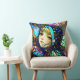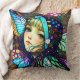 Een grillig, sprookjesachtig personage met levendige, kleurrijke vleugels kijkt zachtjes te midden van een ingewikkelde achtergrond van wervelende patronen. Haar expressieve ogen en uitgebreide hoofdtooi voegen diepte toe aan de betoverende compositie.