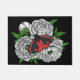 Door de hand getekende vectorillustratie van de cinnabaarmot op een bouquet pony-bloemen