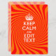 Uw gepersonaliseerde Keep Calm gezegde op een levendig oranje tangerine decor. Een gepersonaliseerd gezegde van de Stijl van de Kalm van het Levensonderhoud op één van een vriendelijk gift. Een grappige of grillige poging om uw creatieve woorden op twee bewerkbare tekstregels te zetten. Vergeet niet om de KAPITAALletters voor de beste resultaten te gebruiken. Gebruik de link "Vraag deze ontwerper" om contact met ons op te nemen met uw speciale ontwerpverzoeken of voor hulp bij uw aanpassingsbehoeften.