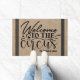 grappige grap welkom deurmatporch patio bold hilarousmonogram monogrammed familienaamfaux burlap coco straw stylecabineboerderij gasthuisjuffe gast humorappartementenhuisjewelkom bij het circus