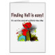 Het vinden van de hel is makkelijk. Het is aan het einde van een leven zonder Christus. Dit Christelijke ontwerp heeft een afbeelding van de duivel die een stad afbrandt. Afbeelding is eigendom van Diligent Heart.