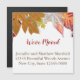 Moet je een ontroerende aankondiging doen? Deze magneet heeft valbladeren bij de bovenkant en twee plaatsen voor uw douanetekst. In het midden kunt u de weergavetekst 'We hebben' bewerken naar uw persoonlijke bericht. Onderaan, geef tekst uit om jouw naam en nieuw adres toe te voegen.