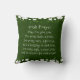 Inspirerend citaat Irish Blessing gooit kussen met een donkergroene achtergrond met witte shamrocks. De voorkant is voorzien van de liefdevolle zegening: "MAG DE WEG omhoog gaan om je te ontmoeten. KAN WIND altijd achteraan zijn. MAG DE ZON warm op je gezicht schijnen; de regenen herfst zacht op je velden en tot we elkaar ontmoeten, MEI GOD HOLD JE in de handpalm." De achterkant heeft een Iers gebed: "Moge God je voor elke traan een glimlach geven, Voor elke zorg, een belofte, en een zegen in elk proces, Voor elke sigaar, een zoet lied, en een antwoord voor elk gebed." _
