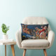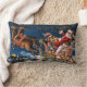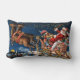 Een charmante kerkkussens met kerstkussen die de kerstman met zijn slee boven een winterstad laten rijden.
