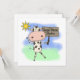 Een zwart-witte koe krijgt in de geest om lezing te bevorderen aangezien hij een teken houdt dat "Gelezen Meer Boeken" op de T-shirts van het lezingsthema, mokken, kaarten, stickers, magneten, sleutelhangers, herinneringen, hoodies, canvas tassen, en andere kleding en giftpunten leest.