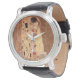 Een polshorloge met olieslak van Gustav Klimt (1862-1918), The Kiss (c. 1907). Gustav is geboren in Oostenrijk. De Art Nouveau-periode heeft ook gevolgen voor de beweging Kunst en Kunst. Klimt gebruikte lagen goudblad. Een man en een vrouw in een aanbesteding omarmen.