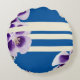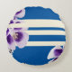Blauwe, paarse en witte abstracte samenstelling met bloemen en lijnen. Abstract kunstcollage ontwerp op rond kussen.