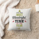 Aangepaste festive witte worpen kussen met een elegant trendy festive typografie-ontwerp: Het is de mooiste tijd van het jaar in , retrostijllettertypen en -kleuren. Een modern design met een retro, met een schattige kerstboom, herten/stags en gouden gordels in zwarte, rode, groene en gouden kleuren op een witte achtergrond. Op de achterkant is er een ander type vakantieontwerp: Moge uw Kerstmis helder en mooi zijn in , retrostijllettertypen en -kleuren. Een modern design met een retro, met schattige kerstbellen, heilige en snoeprietstrepen in zwarte, rode en groene kleuren. Een stijlvol, stijlvol, kleurrijk, kussen met een mooie kerstcadeautje of een seizoensgewijs decor voor je thuis.