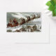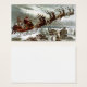 Sinterklaasillustratie die er natuurlijk uitziet en vol detail is. De kerstman rijdt met zijn slee vol rendieren en een zak speelgoed, ook, over een bewolkte maanverlichte sneeuwscène hieronder. Een charmant, groot Victoriaans huis is zijn volgende stop om speelgoed en goodies te leveren. St. Nick houdt het warm met een extra grote bontdeken. Uit zijn slee steken zijn veel speelgoed, waaronder een schommelpaard, baby-poppen, een speelgoed-drum en een poppenhuis.