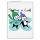 De twee pinguïnenschaats op de bevroren vijver gekleed in gestreepte, kleurrijke de winterpetten, sjaals, en vuisthandschoenen en zwarte teksten leest Schaatsen op het schaatsen themaT-shirts, mokken, kaarten, zakken, herinneringen, kussen, hoodies, stickers, en veel meer Koel is!