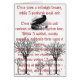 Een gedicht op een achtergrond van rode tekst in een prachtig Gotisch gevoel lettertype, van Edgar Allan Poe's achtervolgende gedicht "The Raven" staat op deze opvallende kaart samen met donkere blote bomen. Een zeer kleine attributie aan Poe verschijnt op de binnenkant linksonder. Blank voor je eigen persoonlijke bericht.