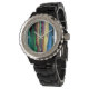 Zwart lederen band horlogeband met strass gezicht met regenboog eucalyptus boom
