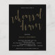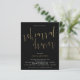 Elegant Script Rehearsal Dinner Gold Black Uitnodiging. Een budgetvriendelijk KLEINER 4,5 x 5,6-inch alternatief. Verkrijgbaar in een SEMI GLOSS 110 lb KAART STOCK of een SATIN FINISH 80 lb THINER PAPER STOCK. Enveloppen zijn een optionele extra. Rehearsal Dinner is in een stijlvolle set kalligrafie in goud en de rest van de tekst die u gemakkelijk kunt personaliseren. U kunt tekst en zwarte en gouden achtergrondkleuren aan beide zijden ook wijzigen als u dit wenst via de optie Verdere aanpassing aanpassen.