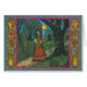 Dit kleurrijke afbeelding show een shaman die haar trommel bedekt terwijl ze om haar sprookje heen en andere wezens daar normaal leeft, het centrale afbeelding wordt geflankeerd door twee rijen draken en dit wordt allemaal vastgehouden in een repetitieve Keltische Boom van het leven
