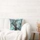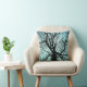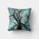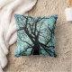Dit werpen kussen kenmerkt het uitzicht van de bodem van een zeer hoge knol boom die omhoog naar de bovenkant kijkt. De blauwe schemerhemel creëer een interessant, abstract effect van gedempte boomstam en takken. Deze grote oude boom leeft in Robert H. Treman State Park in Ithaca, New York. Het afbeelding wordt op de achterkant herhaald.