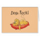 Een leuke bruine hond ontspant gelukkig op haar puppybed en de zwarte tekst leest de "Rots van Honden!" op onze T-shirts, mokken, muismat, knopen, kaarten, en meer van de Rots van Honden!