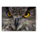 De doordringende gele ogen van een adelaarsuil glower menacingly bij de kijker.