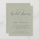 Script Bord Sage Green bruids doucheuitnodiging. Een budgetprijs KLEINER 4,5 inch x 5,6 inch alternatief. Verkrijgbaar in een SEMI-GLANS 110 lb KAART STOCK die vergelijkbaar is met een briefkaart. Er is ÉÉN per blad. Eenvoudige elegantie op populaire lichtwijze groen, met Vrijgezellenfeest in een set handschrift stijl script. Personaliseer de rest van de tekst eenvoudig aan uw eigen gegevens. U kunt ook de tekst- en achtergrondkleuren wijzigen via de optie voor verdere aanpassing als u dat wenst.