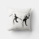 Een expressieve inkt-achtige tekening van een hond die trots een bal vasthoudt. De speelse pose voegt warmte en humor toe, waardoor een eenvoudig kussen verandert in een uitbarsting van hondenvreugde.