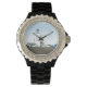 Deze tekening bevat een witte, groene en zwarte vuurtoren die het zee over het hoofd zien. De lucht is blauw met een paar wolken. Witte huizen met groene daken omringen de vuurtoren. Dit ontwerp is beschikbaar op de horloges van vrouwen, mannen en kinderen.