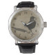 Kraai en zijn schaduw lopen door de tijd op een uniek polshorloge.