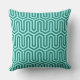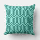 Een Art Deco, Egyptisch geïnspireerd geometrisch motief in turquoise blauw op een bleke aqua achtergrond buitenkussen