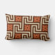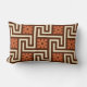 Art Deco Griekse sleutel of labyrint patroon lumbale kussen in donkere chocolade bruin en beige, geaccentueerd met roest / terracotta