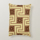 Kunst Deco Grieks sleutelwoord of labyrint patroon accent kussen in warme kamelan en zacht botergeel geaccentueerd met donkerchocolade bruin