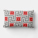 Art Deco Grieks sleutel of labyrint patroon lumbaal kussen in donker grafiet grijs / grijs en wit, geaccentueerd met diep Chinees rood