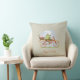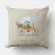 Decoratief kussen "Happy Easter" met het afbeelding van een konijntje op een fiets.