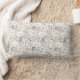 Decoratief kussen met een modern minimalistisch ontwerp, een patroon met kittengezichten, bloemen, gras op een beige achtergrond.