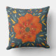Kleurrijke oranje bloemkussen met een witte illustratie van een heldere oranje bloem en veel decoratieve elementen in heldere oranje, gele, blauwe en donkerblauwe kleuren. Deze mooie bloemenkussen zijn vrolijk en gelukkig. Zijn warme kleuren zullen een glimlach op je gezicht brengen als je van florale design en grilachtige illustraties houdt.
