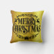 Decoreer uw huis dit vakantieseizoen met deze klastige en feestelijke kussen. Met een zwarte typografische afdruk met de woorden "Zalig kerstfeest", decoratieve typografie-versieringen en twee kleine rendeertjes in zwarte kleur op een faux gouden achtergrond, is het zeker dat je je hele huis een feestelijk gevoel geeft.